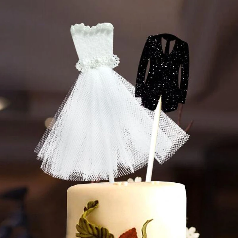 2pcs Set Groom Tuxedo Bride Dress Cake Toppers Picks Wedding Party Decorations Tortenstecker Braut Brautigam Wedding Dress Cake Decorating Supplies Aliexpress